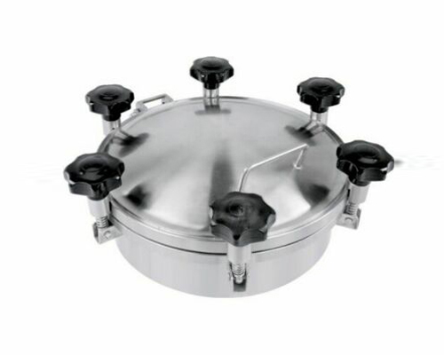 該壓力型人孔主要應用在食品,釀酒,飲料,制藥等工業領域壓力容器上。 ◎外開式人孔蓋子 ◎不銹鋼手輪 ◎帶法蘭式窺視鏡 ◎由任式窺視鏡 ◎表面:Ra0.8um-0...
